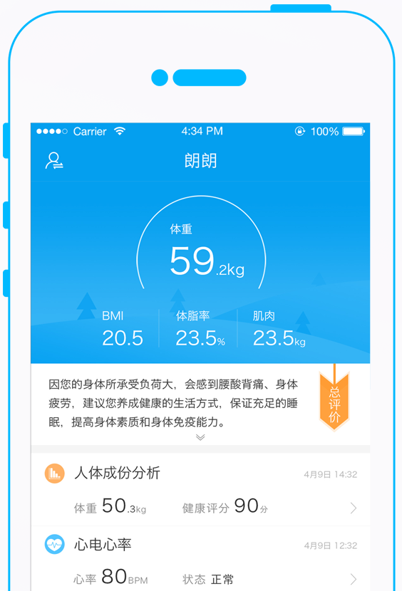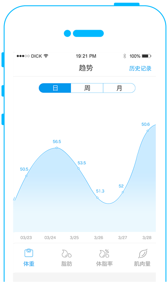 JKOM体脂秤使用非常便捷,通过蓝牙与手机APP连接,每一次测量数据都会自动上传,随时跟踪查看您每日体重、BMI、体脂、水分、骨质和肌肉等变化,给出对应的健康指导建议。